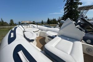 This edition relies on comfort. In addition the bow rail which is safe and convenient for mooring, combined with its new lateral teak covered step facilitates safe boarding. While preserving the tender’s compactness in order to occupy as little space as possible on your boat; the YACHTLINE interior layout has been designed to provide comfortable seating for all passengers. The generous storage locker aperture provides easy access to the equipment that you have stored.